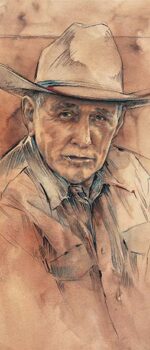Some of Ray's great quotes: "My whole life is the horse" "The horse knows when you know and he knows when you don't "The horse is never wrong" "Trust your horse" "It's amazing what you can learn when you've already learned all there is to learn" I can still hear him clearly, and miss him everyday. I was proud to call him my friend. 15" x 18" limited edition signed & numbered fine art print of original watercolor/pencil painting. Fade resistant inks on high quality acid-free archival paper. This is signed by Ray Hunt and by the artist, Susan Edison.