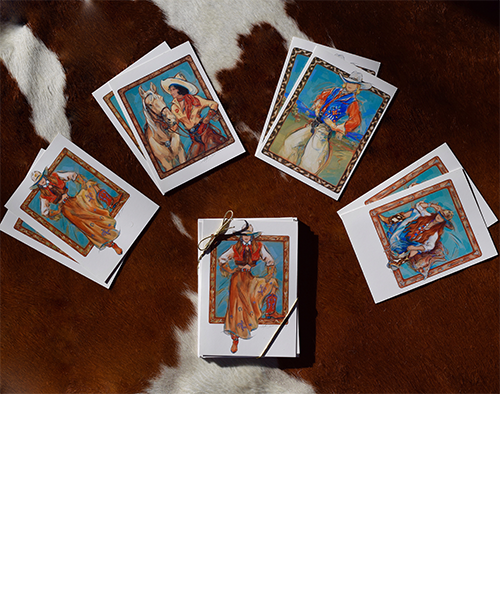 8 assorted 5”x 7” blank note cards, 2 of each cowgirl.